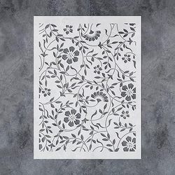 Pochoir réutilisable à motif floral damassé 11,7x8.3in pour meubles muraux, papier en bois-matériau pour animaux de compagnie
